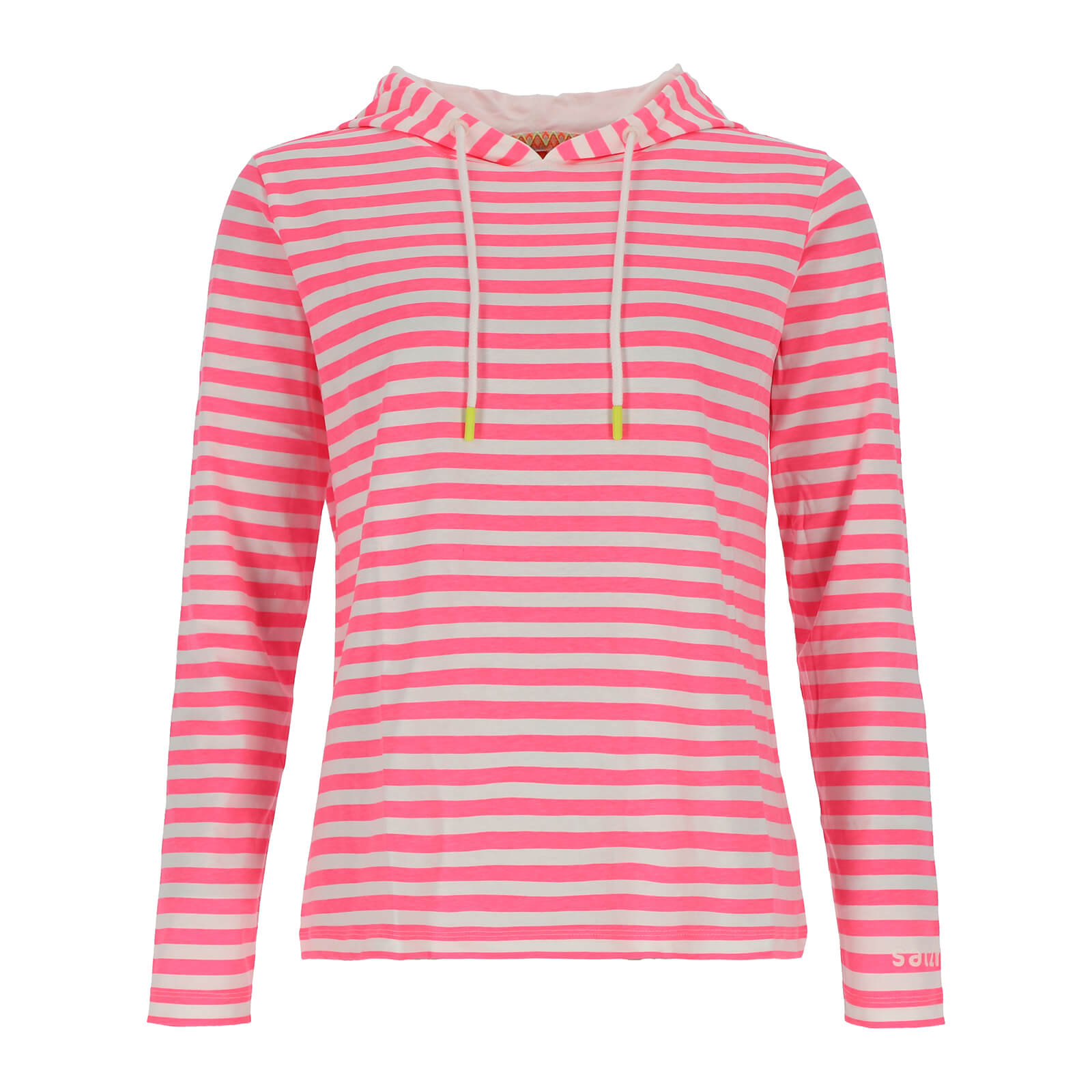 Salzhaut Damen Hoodie Ackerlünning mit Streifen - Gestreiftes Longsleeve-Shirt mit Kapuze in Offwhite-Neonpink Größe S