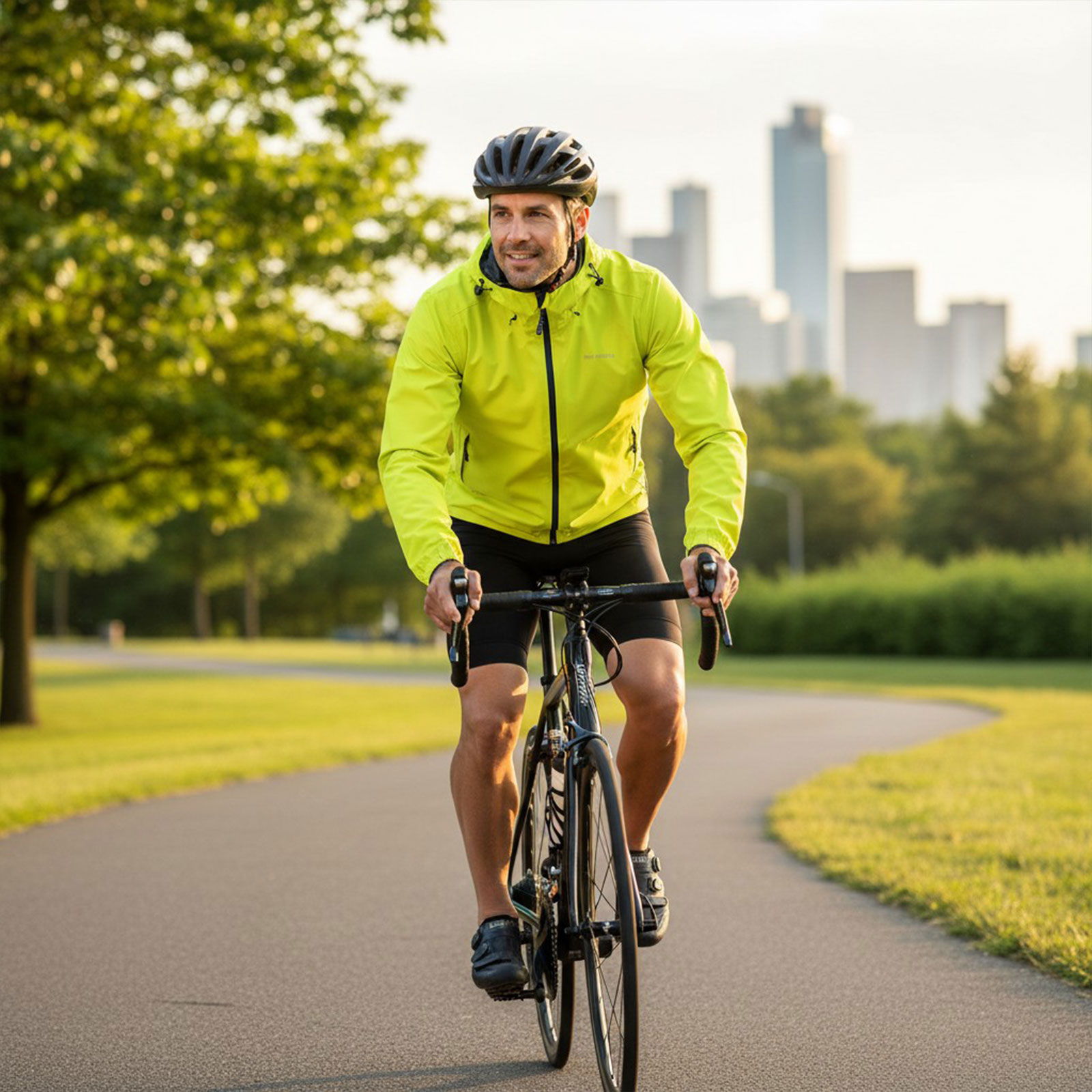 - Wasserdichter 2-Wege-Reißverschluss & sichere Taschen – funktional, komfortabel und ideal als Fahrradjacke
