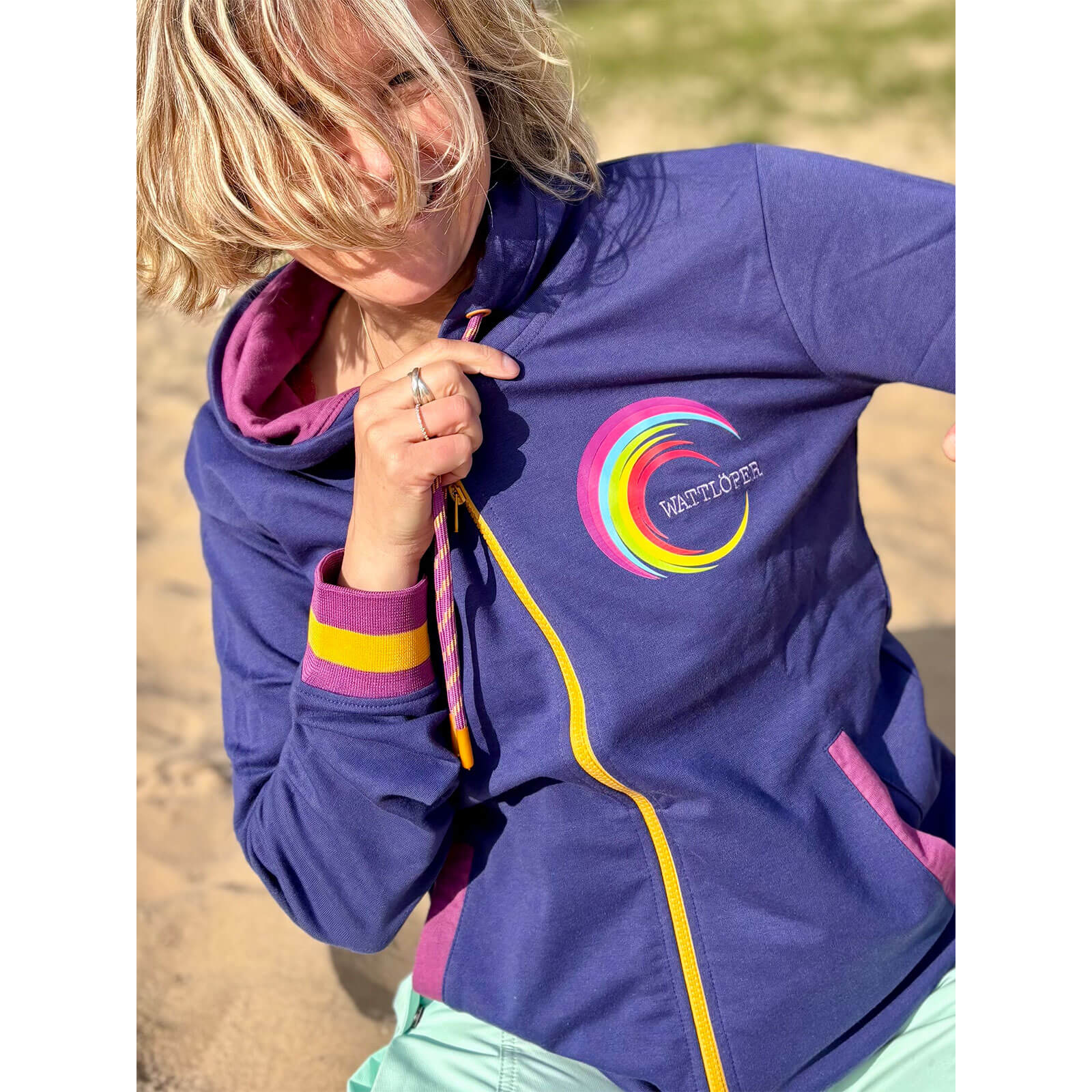 Diese Kapuzenjacke von Wattlöper eignet sich ideal für Freizeit, Alltag, Spaziergänge am Meer oder gemütliche Stunden zu Hause.